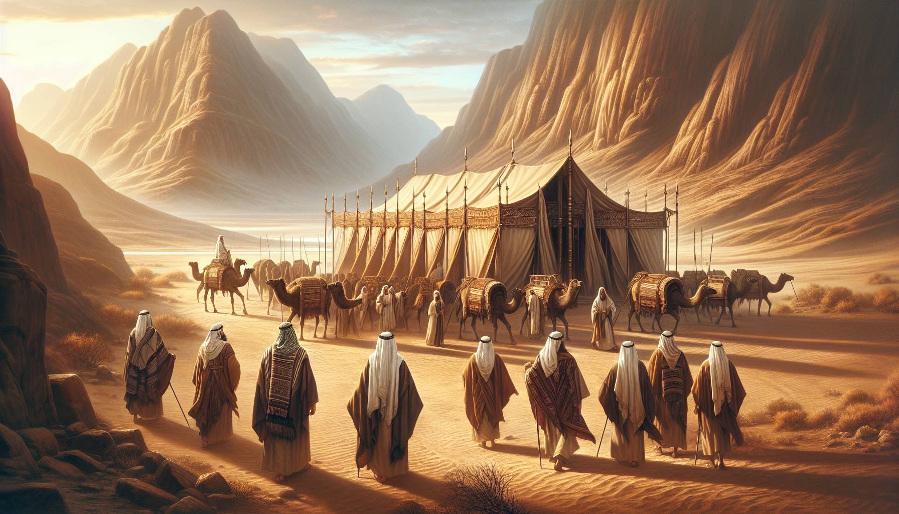 Le premier jour, celui où Moïse acheva de dresser la Demeure, l’air était lourd d’une solennité nouvelle. L’huile d’onction, le cuivre des autels, le bois d’acacia encore tout imprégné de leur odeur récente se mêlaient à la poussière du désert….