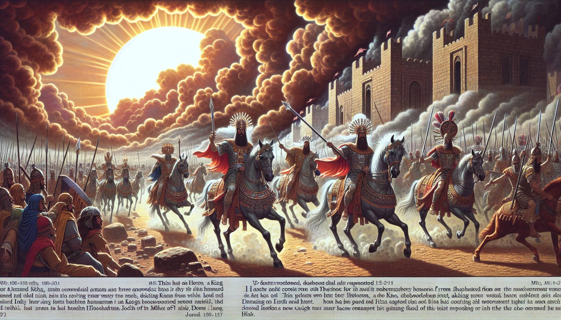 Le soleil frappait la pierre d’un blanc cruel, et la poussière soulevée par les colonnes en marche collait à la peau, aux lèvres, aux paupières. Joram, roi d’Israël, sentait le poids de sa propre couronne comme un casque trop lourd….