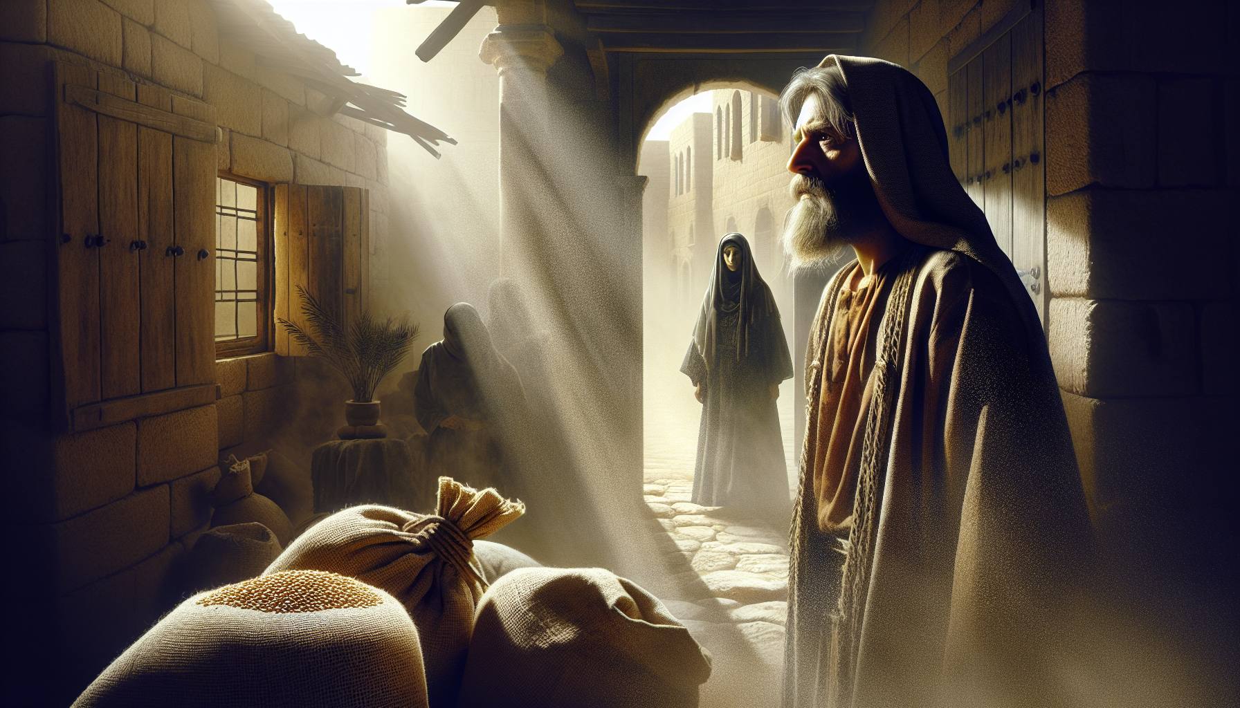 Le jour s’était levé gris, d’un gris de cendre froide qui semblait étouffer les bruits de la ville. Éliakim, assis sur son banc de pierre usé par le temps, regardait sans les voir les allées et venues dans la cour…