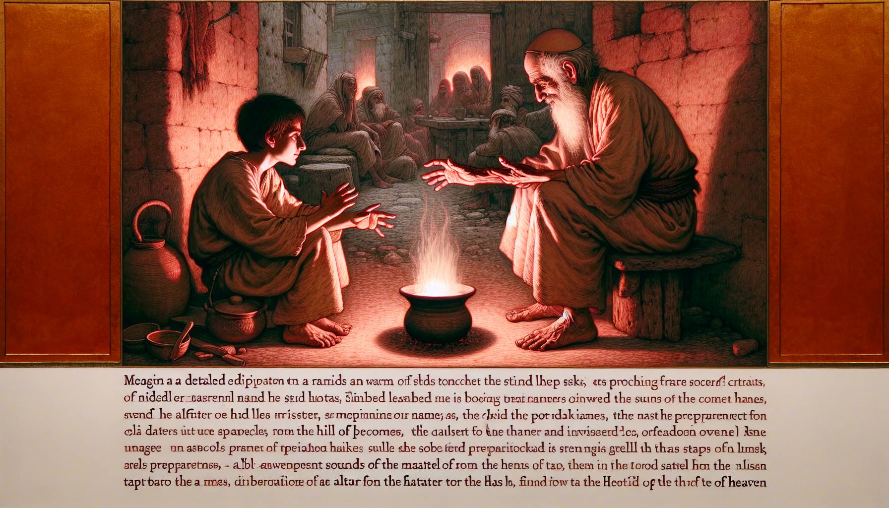 Le crépuscule tombait sur Jérusalem, une poussière dorée qui semblait sortir des pierres elles-mêmes. Dans l’atelier d’Elyakim, l’air était lourd, saturé de l’odeur âcre de l’huile d’olive et de la cire. Il essuya ses mains sur son tablier de cuir,…