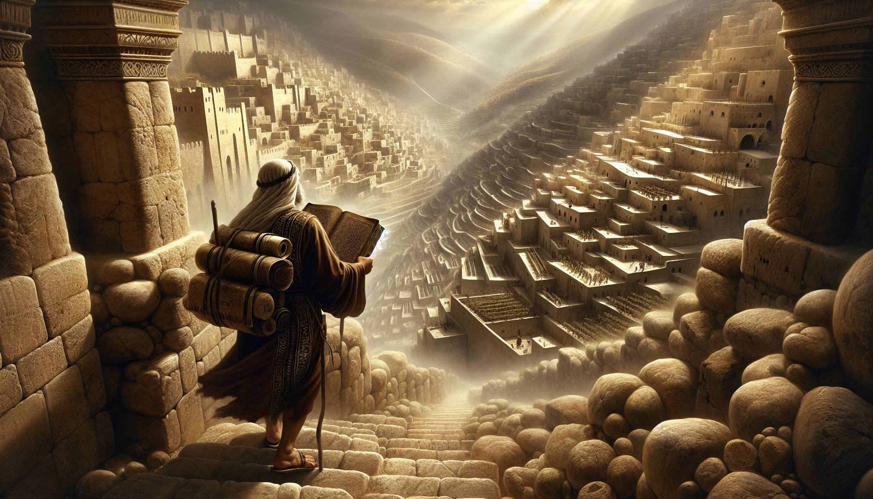 La chaleur de l’après-midi pesait sur Jérusalem, une chaleur lourde, poussiéreuse, qui semblait suinter des pierres mêmes des maisons. Ézéchias, les yeux brûlés par des années de lecture à la lumière vacillante des lampes à huile, sentait cette chaleur différemment….