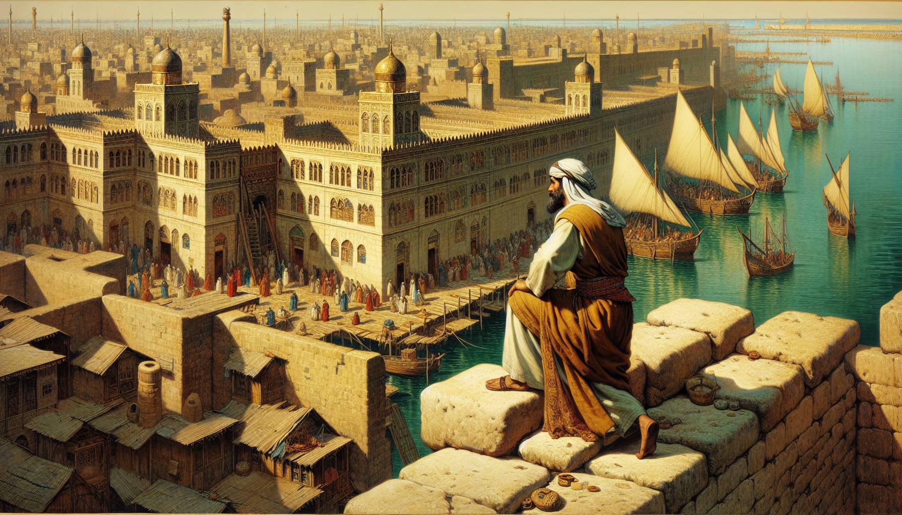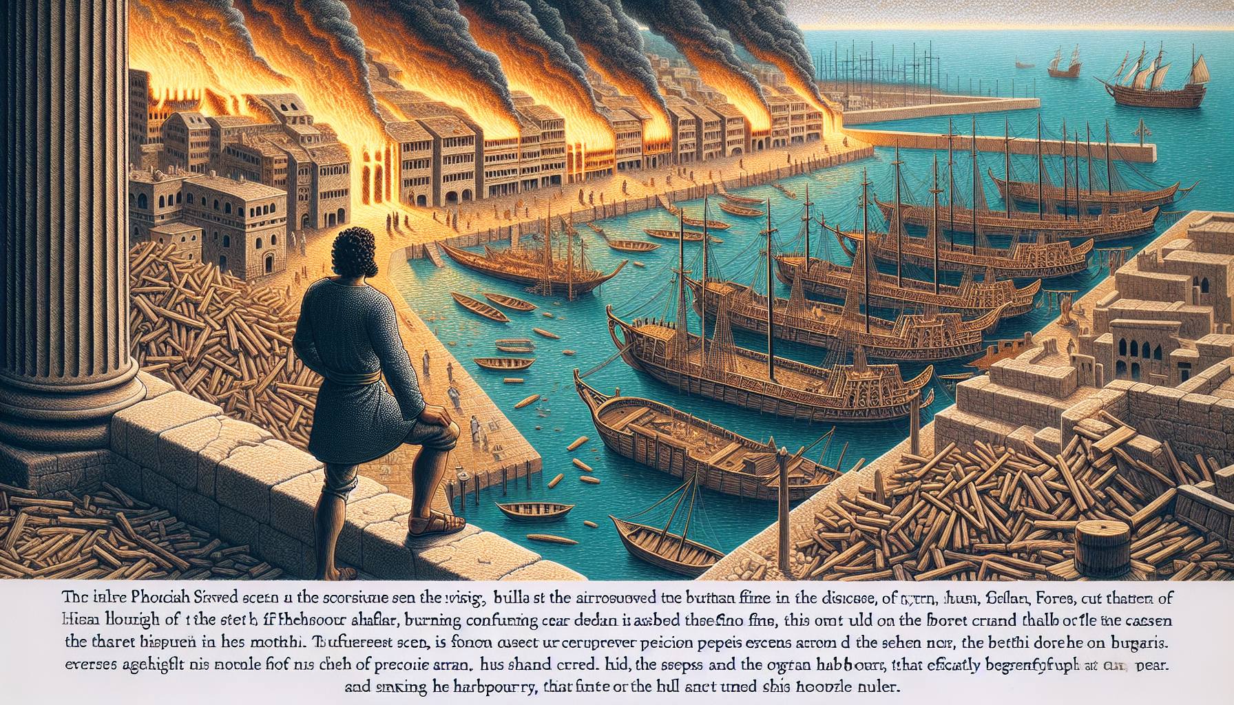 Le vent venait de l’ouest, chargé de sel et du murmure des grandes eaux. Sur les quais de Tyr, la rumeur du commerce couvrait le ressac. Des sacs de laine violette s’entassaient près des jarres d’huile de Chypre ; l’éclat…