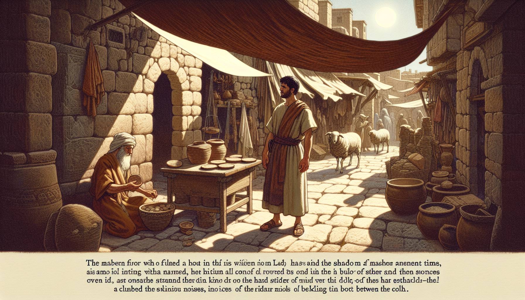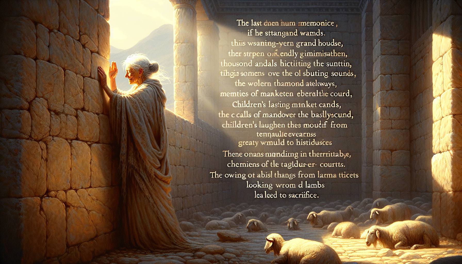 L’air était lourd, d’une chaleur de cuivre, et poussiéreux à l’extrême. Ezra marchait depuis des heures, les sandales usées par la terre craquelée du chemin. Devant lui, Jérusalem dressait ses remparts pâles sous le soleil implacable, mais son regard se…