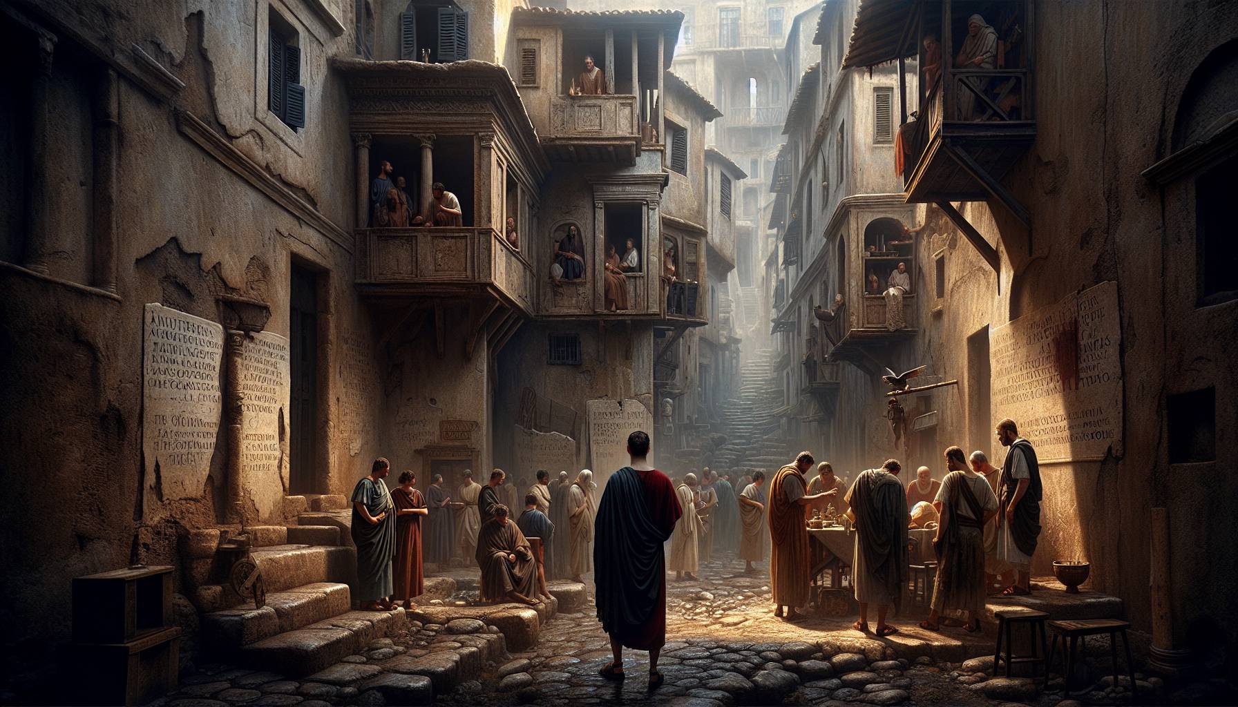 La lumière de fin d’après-midi filtrait à travers la poussière des rues d’Éphèse, longue et dorée, accrochant les fils des toiles d’araignée sous les auvents. Marc était assis sur un banc de pierre, le dos contre un mur tiède, les…