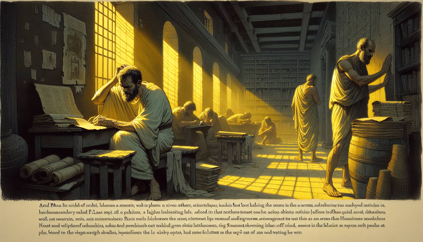 Le vieil Éléazar sentait l’orage monter bien avant que les nuages n’assombrissent les collines de Thessalonique. Ce n’était pas une tempête de pluie, mais une autre, plus sourde, qui grondait au-dedans de la communauté. Assis sur un tabouret bancal devant…