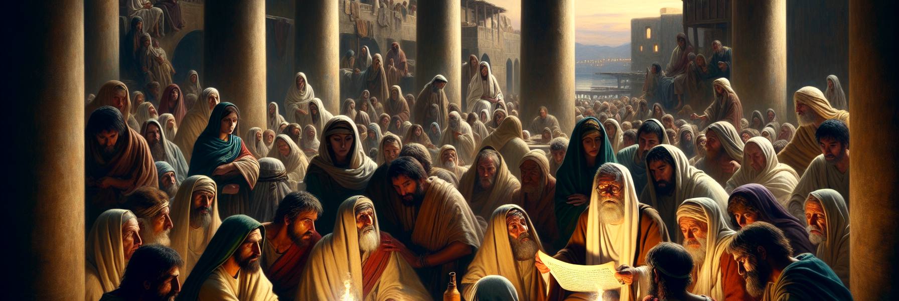 Le vieil Éleazar, dont les cheveux blancs ressemblaient à la neige sur le mont Hermon, marchait lentement à travers les ruelles pavées de la ville. Le soleil levant teintait les colonnes de marbre de nuances dorées, mais son cœur était lourd. Dans sa main ridée, il serrait un parchemin usé – une lettre venue de loin, écrite par un certain Paul à la communauté des Hébreux.