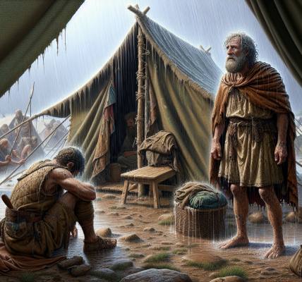 Éleazar s’approcha, et sans une hésitation, il retira sa propre tunique de laine fine et la déposa sur les épaules tremblantes de la femme. « N’oubliez pas l’hospitalité », se souvint-il en guidant Myriam vers sa modeste demeure. Là, dans la pénombre de sa maison, il partagea son dernier pain et son vin, se rappelant que certains, sans le savoir, avaient logé des anges.