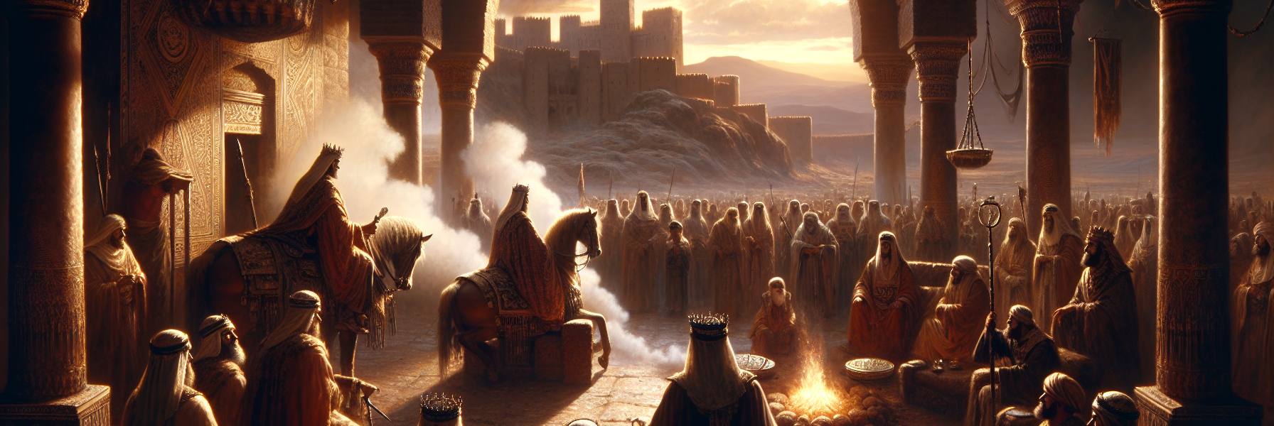 Le soleil frappait durement les collines de Rabbath-Ammon, irradiant la pierre blonde des remparts. Dans la cour du palais, Nahash, roi des Ammonites, gisait sur son lit de mort, les draps déjà humides de cette sueur particulière qui précède le grand passage. Son fils Hanoun, agenouillé près de lui, sentait le poids de l’héritage lui écraser les épaules.