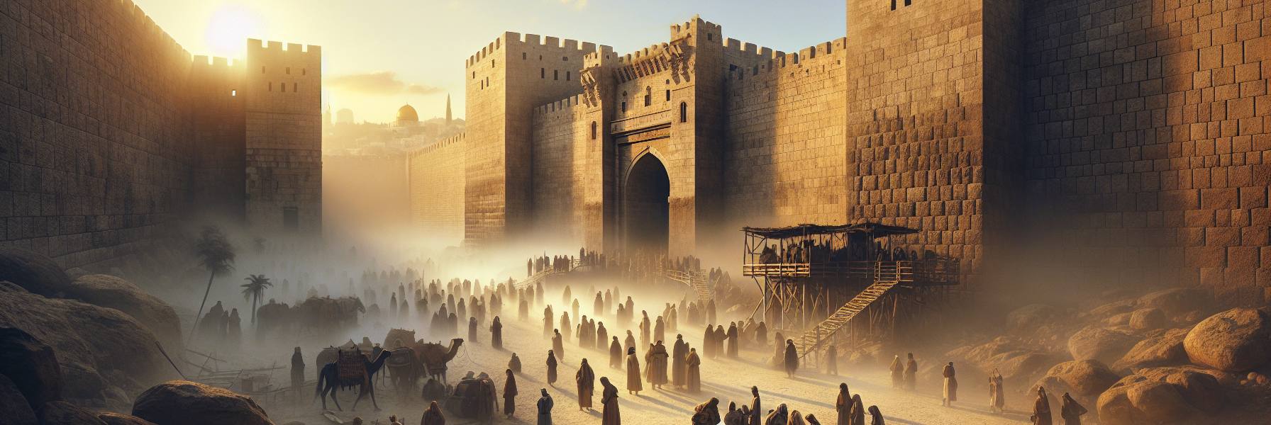 La chaleur de ce premier jour du septième mois s’étirait sur Jérusalem comme une étoffe lourde et poussiéreuse. L’air sentait la pierre chaude, l’huile d’olive et la sueur des milliers de visages tournés vers la place qui s’étendait devant la porte des Eaux. Moi, Shélémia, j’étais là, appuyé sur mon bâton de figuier, les jointures douloureuses rappelant chaque année de l’exil. Soixante-dix ans. Soixante-dix hivers avaient glacé les os de notre peuple en terre étrangère. Et pourtant, ce matin-là, sous ce ciel d’un bleu implacable, nous étions debout. Debout devant une ville en reconstruction, debout devant notre histoire retrouvée.