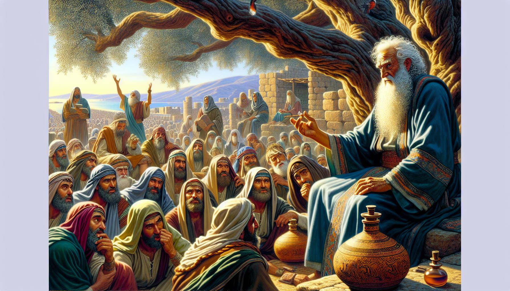 Voici une histoire biblique détaillée inspirée de l’Ecclésiaste 7, racontée dans le style narratif des Écritures : Au temps où la sagesse régnait encore à Jérusalem, un vieil homme aux épaules voûtées par les saisons s’assit à l’ombre du figuier…