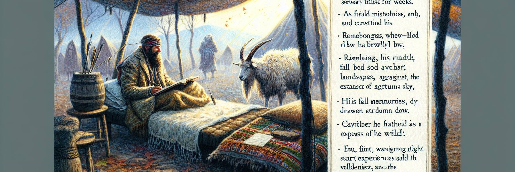 « Ésaü, mon fils, » appela-t-il, sa voix un peu rauque. L’appel résonna faiblement sous la toile. « Va au champ, prends tes armes, et chasse-moi du gibier. Prépare-moi un plat comme j’aime, et apporte-le-moi. Que je mange, et que mon âme te bénisse avant que je ne meure. »
