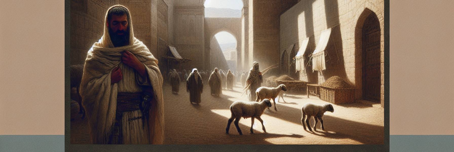 Le chemin vers l’entrée de la Tente de la Rencontre était comme un autre monde. Le bruit du camp – enfants, moutons, marteaux sur le métal – s’estompait pour laisser place à un silence grave, troublé seulement par le frottement de leurs pas sur le sable. Devant lui, d’autres hommes attendaient, certains avec un agneau, d’autre avec une jeune chèvre. Les visages étaient tendus, recueillis. Il n’y avait pas de bavardage ici. Seulement l’attente, et l’odeur insistante d’un feu qui ne s’éteignait jamais.