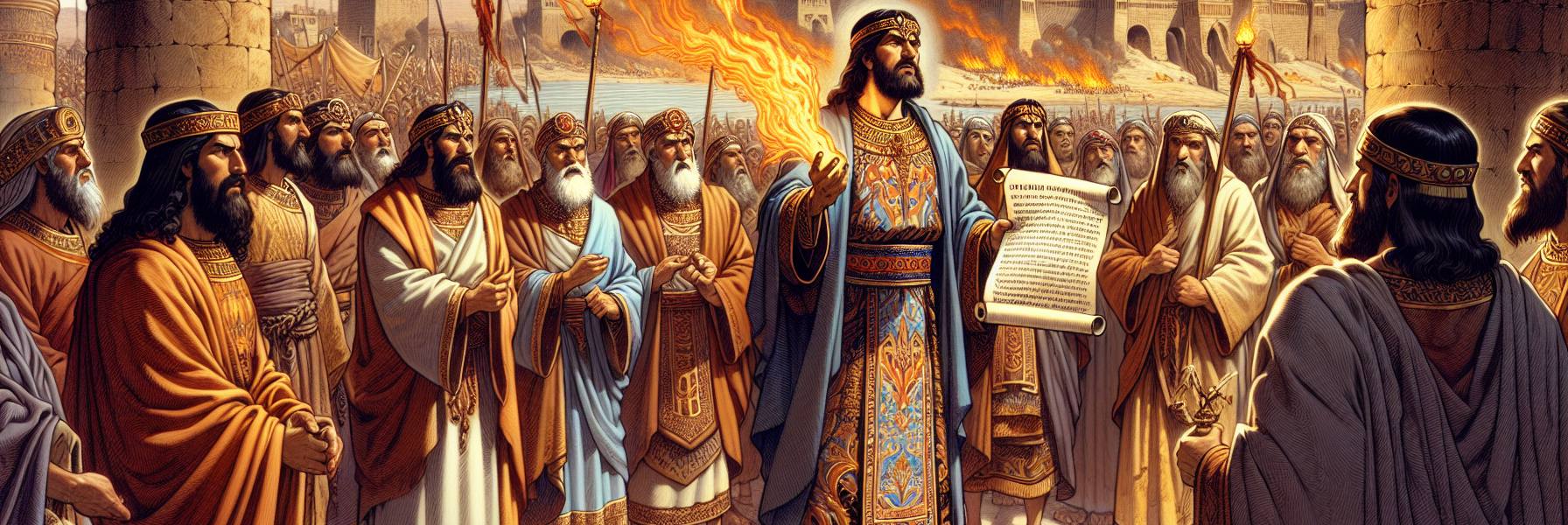 Ce trésor lui brûlait l’esprit. Comment le protéger ? La route était infestée de bandits, de pillards. La confiance en Dieu est une chose, la responsabilité en est une autre. Il convoqua douze des principaux sacrificateurs, des hommes dont la vie était vouée au service du Temple. Parmi eux, Shérébia et Hashabia, des lévites aux épaules larges et au regard droit.