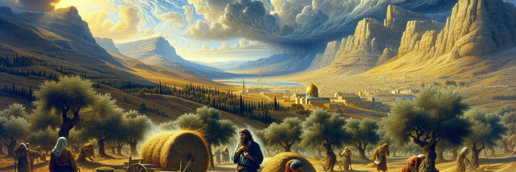 Les nouvelles de la plaine étaient mauvaises. Des razzias, des menaces à la frontière nord, des murmures de révolte étouffés dans le sang. Le gouverneur perse, là-bas, à Césarée, était un homme impatient. Et dans la ville, la foi vacillait. On chuchotait dans les cours : *Où est ton Dieu ? Les montagnes sont-elles donc si solides ?* Éliakim sentait ces doutes le ronger, lui aussi. Il était scribe, homme des textes et des paroles, et les mots, devant le grondement sourd du monde, lui semblaient soudain dérisoires, feuilles mortes emportées par le vent d’est.