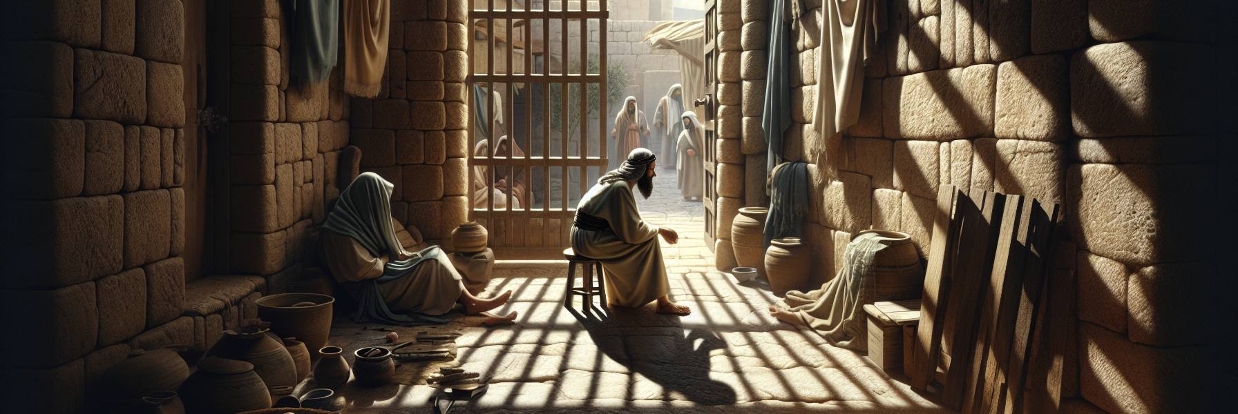 Le crépuscule tomba quand ils y parvinrent. Ils s’assirent sur la place, à l’entrée de la ville, mais personne ne les invita à passer la nuit. La coutume de l’hospitalité, sacrée, était morte ici. Ils attendirent, la poussière du voyage collée à la peau, dans le silence grandissant. Finalement, un vieil homme rentra des champs, tardivement. Lui aussi était originaire de la montagne d’Éphraïm ; il vivait désormais comme étranger à Guibea. Son regard croisa celui du voyageur délaissé. « Où vas-tu, et d’où viens-tu ? » demanda-t-il. La réponse du Lévite fut simple : « Nous passons de Bethléem de Juda aux confins d’Éphraïm. Personne ne nous ouvre sa maison. Pourtant, nous avons de la paille et du fourrage pour nos ânes, du pain et du vin pour moi, pour ta servante et pour le garçon qui suit tes serviteurs. Nous ne manquons de rien. »