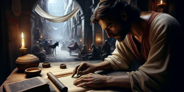 La plume, une vieille connaissance aux reflets d’ébène usé par le temps, semblait hésiter au-dessus du rouleau. Dehors, le vent d’est apportait des senteurs de poussière et de feu lointain, un relent âcre qui collait à la gorge. J’écrivais, mais…