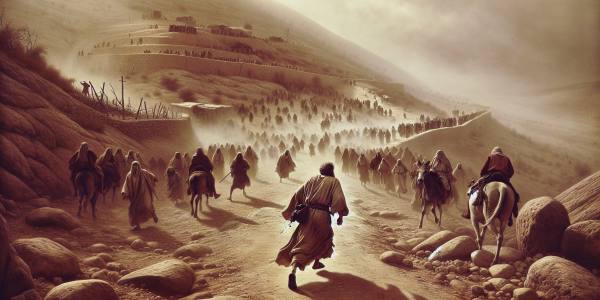 Le chemin sentait la poussière chaude et la sueur aigre. Ce n’était plus une fuite, c’était une lente dégringolade. David, les pieds enflés dans des sandales couvertes de la poudre blanche du chemin, avançait en tête de ce qui restait…