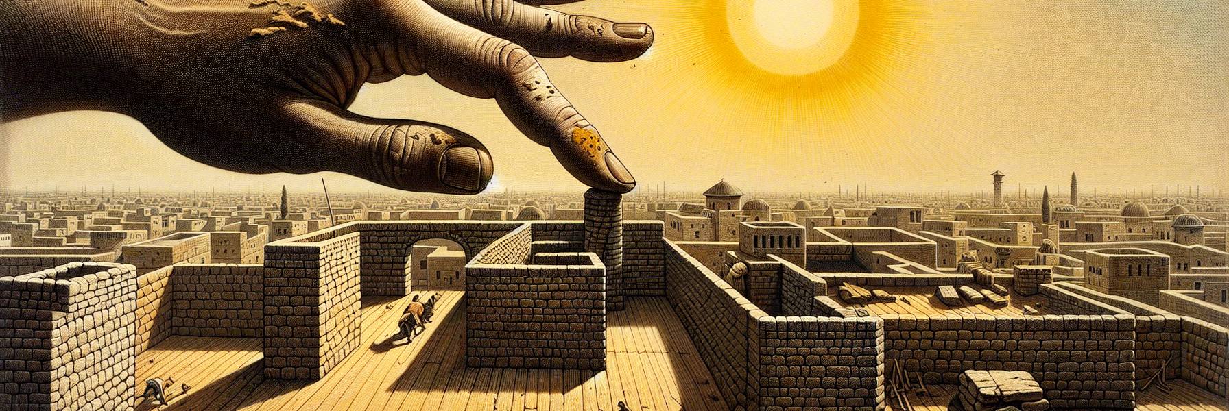 Il se leva, les articulations un peu raides, et alla chercher un outil pointu. Revenu devant la brique, il s’agenouilla. Le geste était absurde, il le savait. Mais il obéit. Il se mit à graver, avec une lenteur méticuleuse, des lignes sur la surface ocre. Des traits qui devinrent des remparts, des angles qui formèrent des tours. Jérusalem. Il gravait la ville sainte, sa ville, sur ce fragment d’argile banal, perdu au milieu de la plaine babylonienne. Chaque sillon dans la terre sèche était une douleur. Il y mit des heures, perdu dans le souvenir des pierres, de l’odeur du marché, du murmure des prières au Temple.