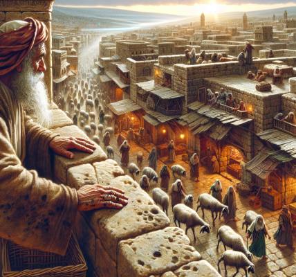 Le vent ce jour-là sentait la poussière et l’huile rance. Il soulevait des tourbillons minuscules dans les ruelles de Bethléem, se faufilant sous les portes des maisons de pierre où les femmes, voix basses, commentaient l’arrivée de l’étranger. Un vieil homme, vêtu d’un manteau de prophète, usé aux bords. Samuel. Son nom seul faisait trembler. On racontait qu’il avait fendu un roi en deux avec une parole. Et le voilà qui entrait dans la ville, le front barré d’un souci profond, suivi d’un serviteur poussant un veau maigre. Le sacrifice, pensaient-ils. Toujours le sacrifice. Mais Samuel cherchait autre chose.