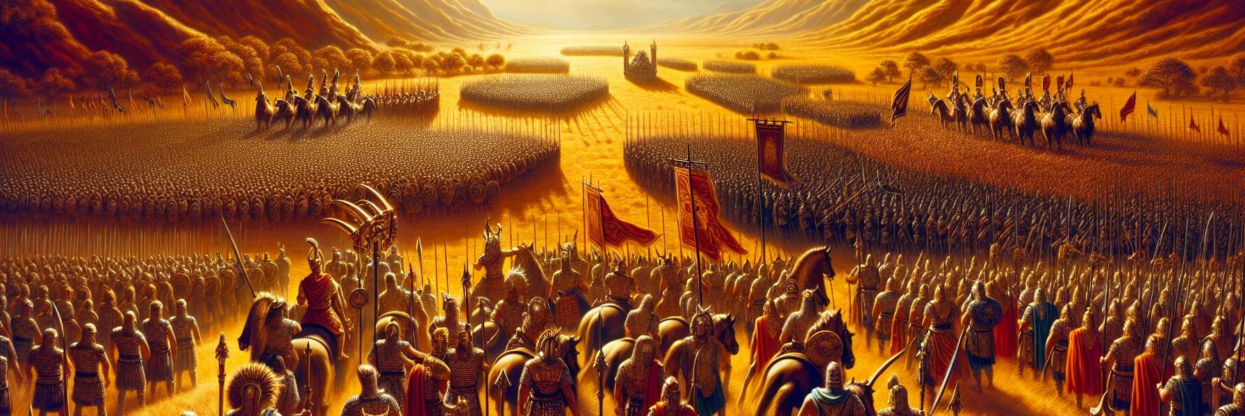La chaleur était lourde ce matin-là sur les hauteurs de Tsemaraïm. Une brise faible, chargée de l’odeur de la terre sèche et des pins, soulevait par moments la poussière ocre du chemin. Abiya, le roi, sentait le poids de son armure de cuir renforcée de plaques de bronze. Ce n’était pas tant le poids du métal que celui du moment. Il se tenait face à la montagne d’Éphraïm, et en contrebas, dans la vallée qui s’étirait comme une blessure entre deux collines, l’armée de Jéroboam se déployait. Une marée humaine, bruyante, désordonnée, étincelante de pointes de lance. Leur nombre était écrasant. Autour de lui, ses hommes, les hommes de Juda et de Benjamin, se taisaient. On entendait seulement le grincement des courroies, le heurt étouffé des boucliers, le souffle court de la peur.