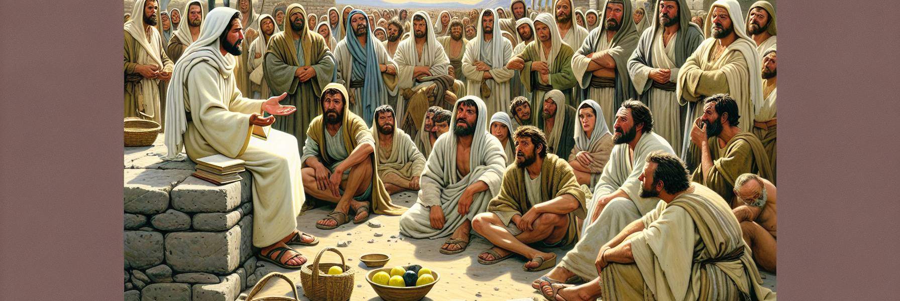 Jésus se tut un instant. Son regard passa sur la foule des proches, ces âmes un peu froissées, puis il l’éleva vers les derniers, ceux qui jugeaient. Il n’y avait pas de colère dans ses yeux, mais une sorte de profonde tristesse, et une détermination douce. Il se tourna légèrement, et son geste embrassa la campagne alentour, où l’on entendait par moments le bêlement lointain d’un mouton.
