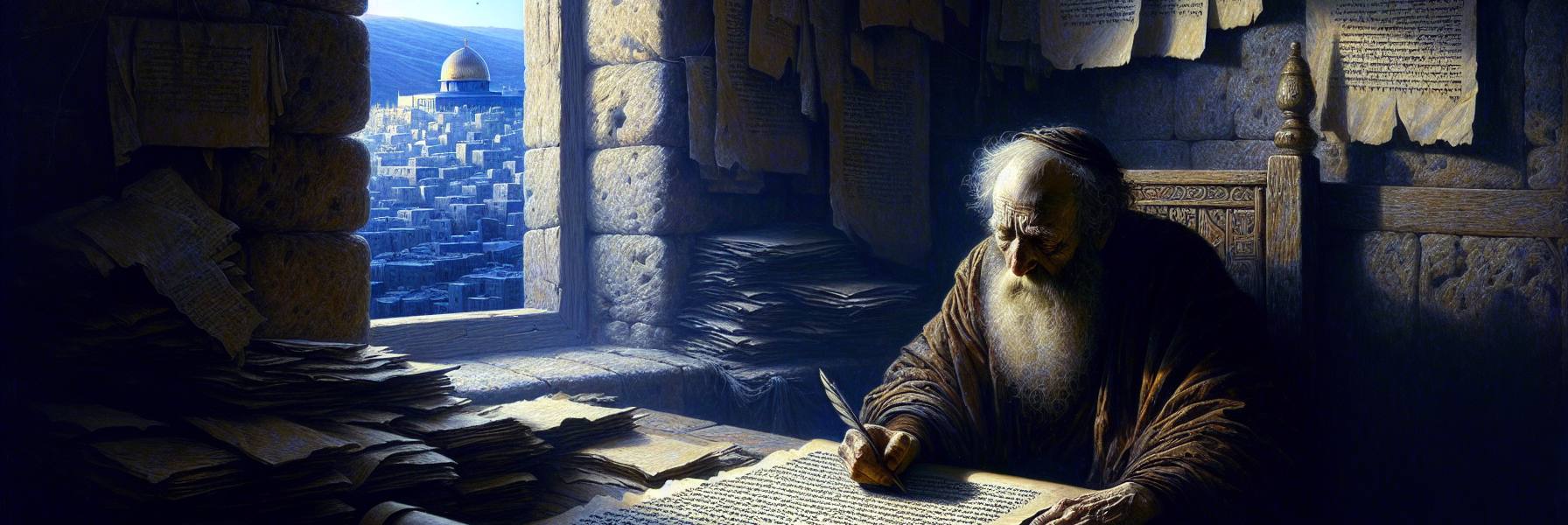 L’aube venait, mais ce n’était pas encore le jour. Une lueur indécise, couleur de cendre humide, se glissait entre les collines de Juda. Sur la terrasse plate de sa maison, Ézra sentait le froid de la pierre traverser la laine de son manteau. Il ne dormait plus, les nuits étaient devenues de longues veilles. Ce matin-là, une étrange pesanteur, douce et insistante, l’avait poussé dehors, vers le silence qui précède tout.