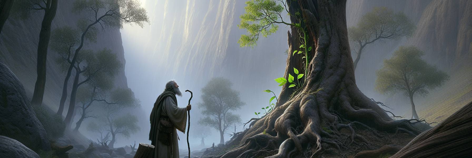 Un matin, Yitshak pris sa canne. Il n’allait pas chercher le miracle, ni le signe spectaculaire. Il allait voir, simplement. Il marcha vers le nord, suivant les chemins poussiéreux. Près de Capharnaüm, il s’arrêta à l’orée d’un bois de chênes et de térébinthes. C’est là qu’il le comprit, non par une parole, mais par un spectacle muet.