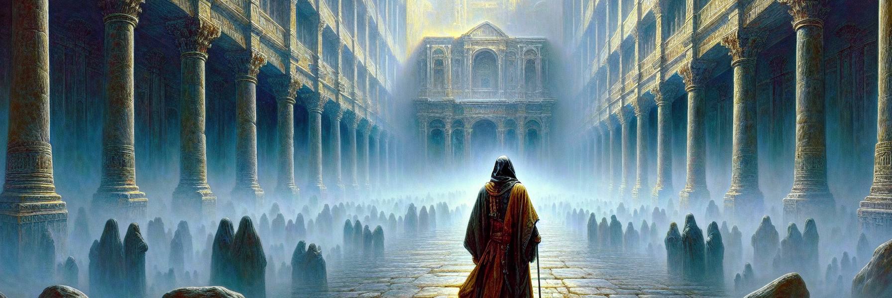 La pierre était froide sous ses pieds nus. Josué sentait chaque rainure du dallage, chaque éclat de marbre usé par les générations de prêtres qui l’avaient précédé. Mais aujourd’hui, ce n’était pas le froid du sanctuaire qui le faisait frissonner. C’était la toile de sac, rêche, imprégnée de la poussière du retour, collée à sa peau par une sueur non pas d’effort, mais d’angoisse. Elle lui mangeait les épaules. Et sur cette bure misérable, la crasse. Pas seulement la poussière du chemin, non. Une saleté plus profonde, plus tenace, comme une huile noire qui aurait imprégné la fibre même du tissu. La crasse de l’exil. La suie des années passées loin des parfums de l’autel, à respirer la fumée des idoles étrangères. La honte d’un sacerdoce interrompu, d’une lignée qui avait failli.