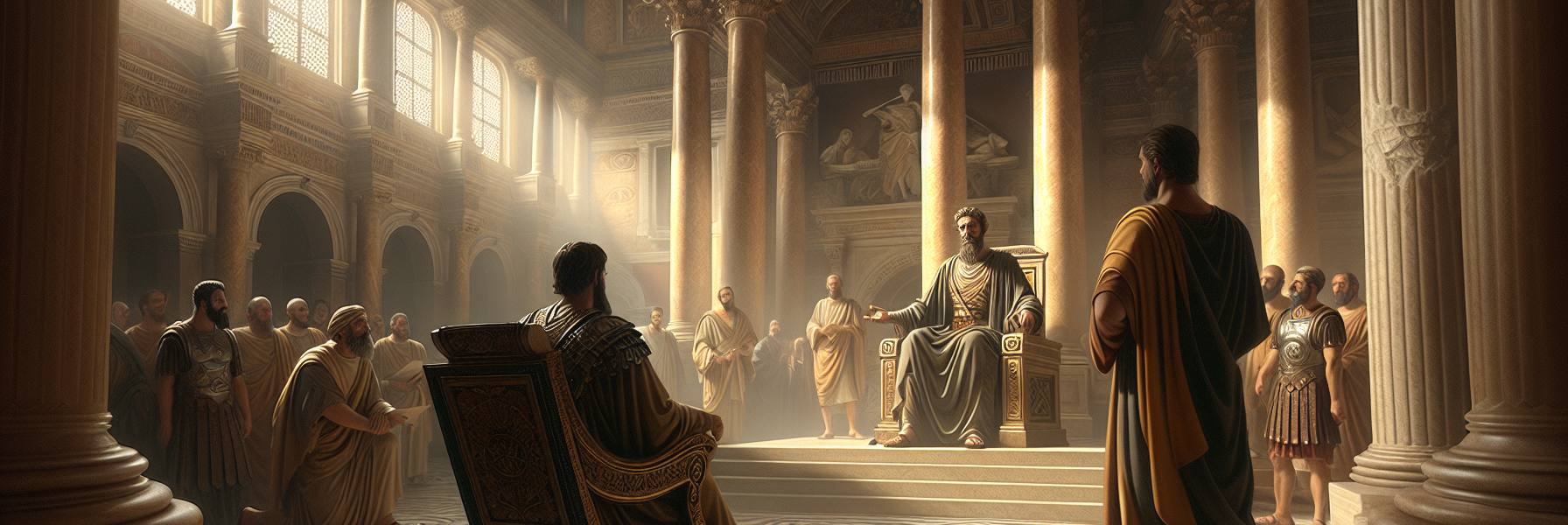 Des jours monotones avaient suivi. Mais Félix, parfois, le faisait venir. Avec Drusille, qui était juive, il l’écoutait discourir. Ces entretiens privés avaient une saveur particulière. Paul se tenait dans la pièce fraîche du palais, face au couple puissant. Il ne parlait plus de droit romain ou d’accusations. Il parlait de la foi en Jésus-Christ. Et il ne le faisait pas en termes doux.