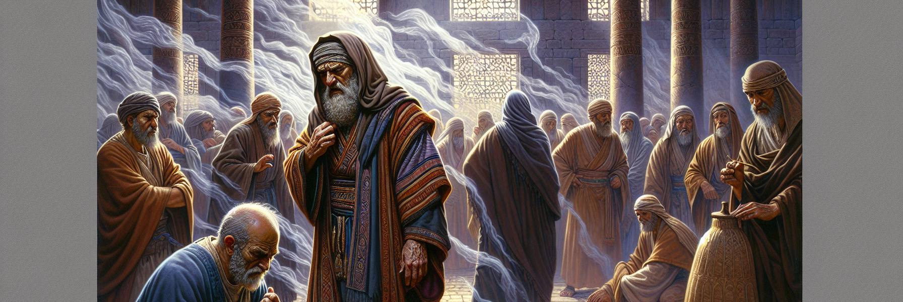 La chaleur de l’été pesait sur Jérusalem, une chaleur lourde, chargée de poussière et du relent des offrandes brûlées. Jérémie sentait l’odeur du sang séché sur ses propres vêtements, un souvenir tenace des paroles qu’il ne pouvait retenir. Ce jour-là, la cour du Temple fourmillait. Les marchands de colombes, les changeurs d’argent, les pèlerins venus de Judée, tout ce bruit formait une clameur continue, un fond sonore à l’inquiétude qui le rongeait.