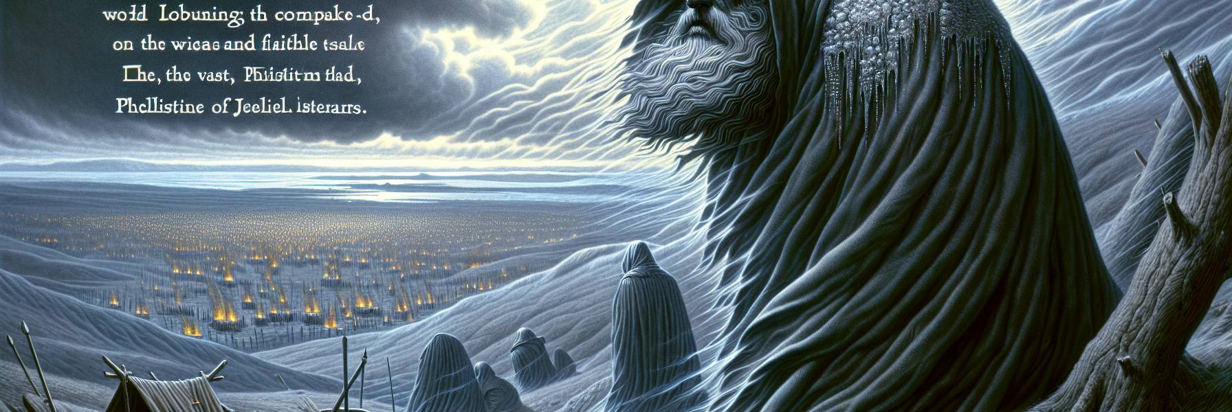 La nuit était épaisse sur les montagnes de Guilboa, une obscurité qui semblait avoir absorbé jusqu’au souvenir de la lumière. Dans sa tente, Saül sentait le poids de ce ciel bas, plus lourd que sa cuirasse. L’air était immobile, chargé de l’odeur de la terre remuée, de la sueur des hommes et d’une peur tenace qui rampait entre les feux de camp. Depuis des jours, le silence de l’Éternel lui cerclait le crâne comme un bandage trop serré. Ni rêves, ni sorts, ni prophètes. Rien. Seule cette vacuité, ce vide qui résonnait à l’unisson des battements affolés de son cœur. Les Philistins étaient là, en contrebas, campés comme une maladie sur la plaine. Et lui, le roi, était nu devant le néant.