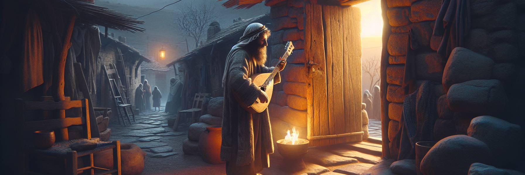 Il portait sa harpe contre lui, enveloppée d’un tissu rude. Ses doigts, calloux, en effleuraient le bois comme pour se rassurer. Ce soir, ce serait son tour de conduire le chant après l’offrande. Pas en tant que grand prêtre, ni même lévite de première ligne. Juste Éliah, fils de Yonadab, l’un de ces musiciens dont on ne retient pas le nom mais dont le cœur, parfois, soulève les âmes. On lui avait assigné le psaume nouveau. Le cent quarante-neuvième. Il le ruminait depuis l’aube.