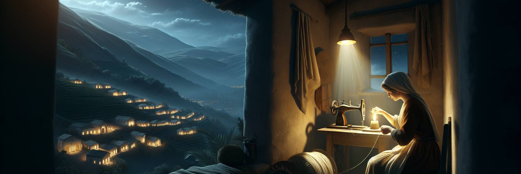 De retour, pendant que le pain cuisait, elle s’installa devant le métier à tisser. Le *clac-clac* rythmé des navettes se mêla au chant des cigales dehors. Elle ne tissait pas seulement de la toile ; elle tissait de la sécurité, de la chaleur. Les vêtements qu’elle confectionnait étaient solides, beaux dans leur simplicité. Rien ne se perdait. Les chutes de tissu devenaient des couvertures pour les nouveau-nés des femmes des serviteurs, ou des chiffons pour lustrer les meubles de cèdre.