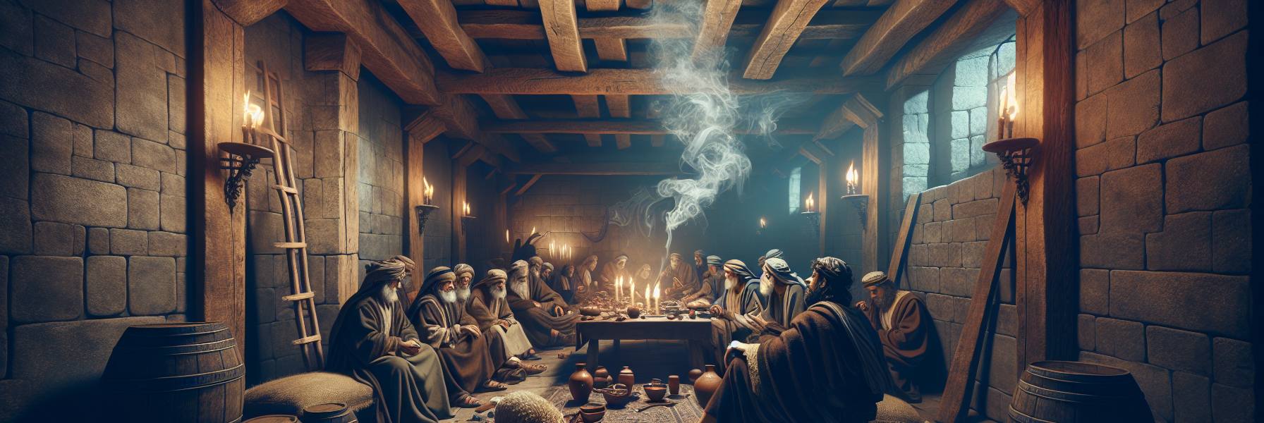 La pièce sentait l’huile de lampe et le pain rompu. Une chaleur lourde, presque palpable, stagnait entre les murs de la salle haute, malgré la fraîcheur du soir de printemps au-dehors. Dehors, Jérusalem bruissait de préparatifs clandestins, mais ici, dans cette pièce que l’un d’eux avait prêtée, le temps semblait s’être figé, alourdi par un pressentiment que personne n’osait nommer.