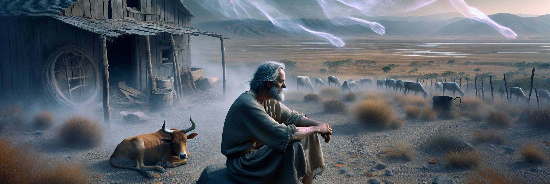 Il faisait un vent âpre sur le tas de cendre, un vent qui venait de loin, balayant les souvenirs de poussière et de douleur. Job était assis, et ses os lui semblaient étrangers, comme si sa chair, martyrisée, avait fini par n’être qu’un vêtement trop large sur une charpente de souffrance. Les paroles venues du tourbillon résonnaient encore en lui, non comme un écho, mais comme une présence continue, une marée dans ses veines. Ce n’était pas une réponse à ses « pourquoi ». C’était plus vaste, et plus intime à la fois. Une vision du monde où le chevreau trouvait son abri et l’aigle son essor, où les profondeurs de la mer étaient un secret et les chaînes des Pléiades un mystère délicat. Dieu lui avait montré l’épaisseur de la création, et dans cette immensité, sa propre question, si brûlante, s’était mise à pâlir, non par dédain, mais par excès de lumière.
