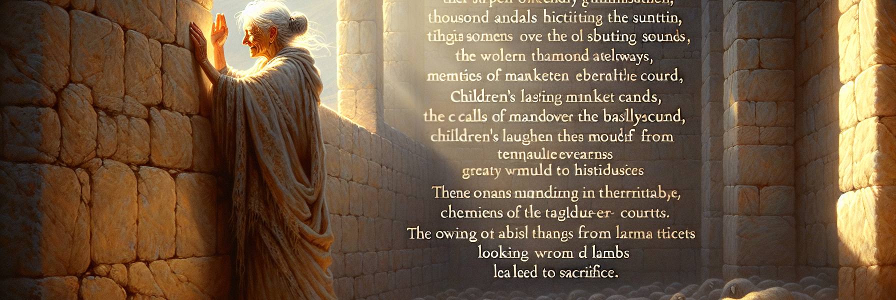 Elle leva les yeux vers le mont Morija. La silhouette du Temple, ou de ce qu’il en restait, se découpait contre le ciel plombé. Plus de nuée de gloire. Juste un amas de blocs disjoints, profanés. Les jeunes enfants, le souffle même de l’avenir, étaient morts de faim dans les bras de leurs mères devenues folles de douleur. Les prêtres gémissaient, non plus dans la sainte liturgie, mais dans l’immondice. Les anciens, visages ravagés, courbés dans la poussière.